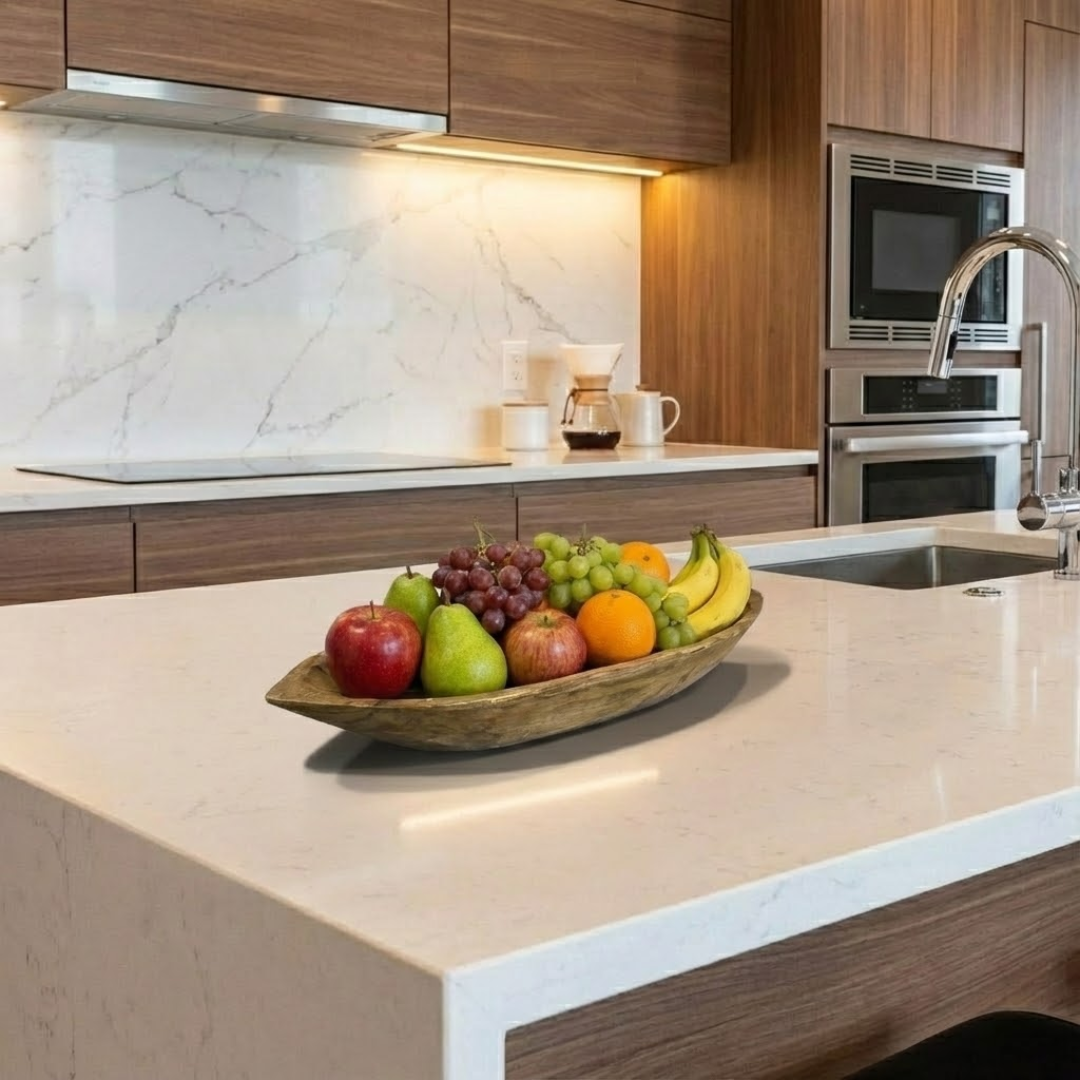Sa forme allongée et son design épuré en font une pièce versatile : coupe à fruits, présentoir à pain ou objet décoratif, elle s’intègre aussi bien dans un intérieur minimaliste que dans une ambiance bohème ou bord de mer.