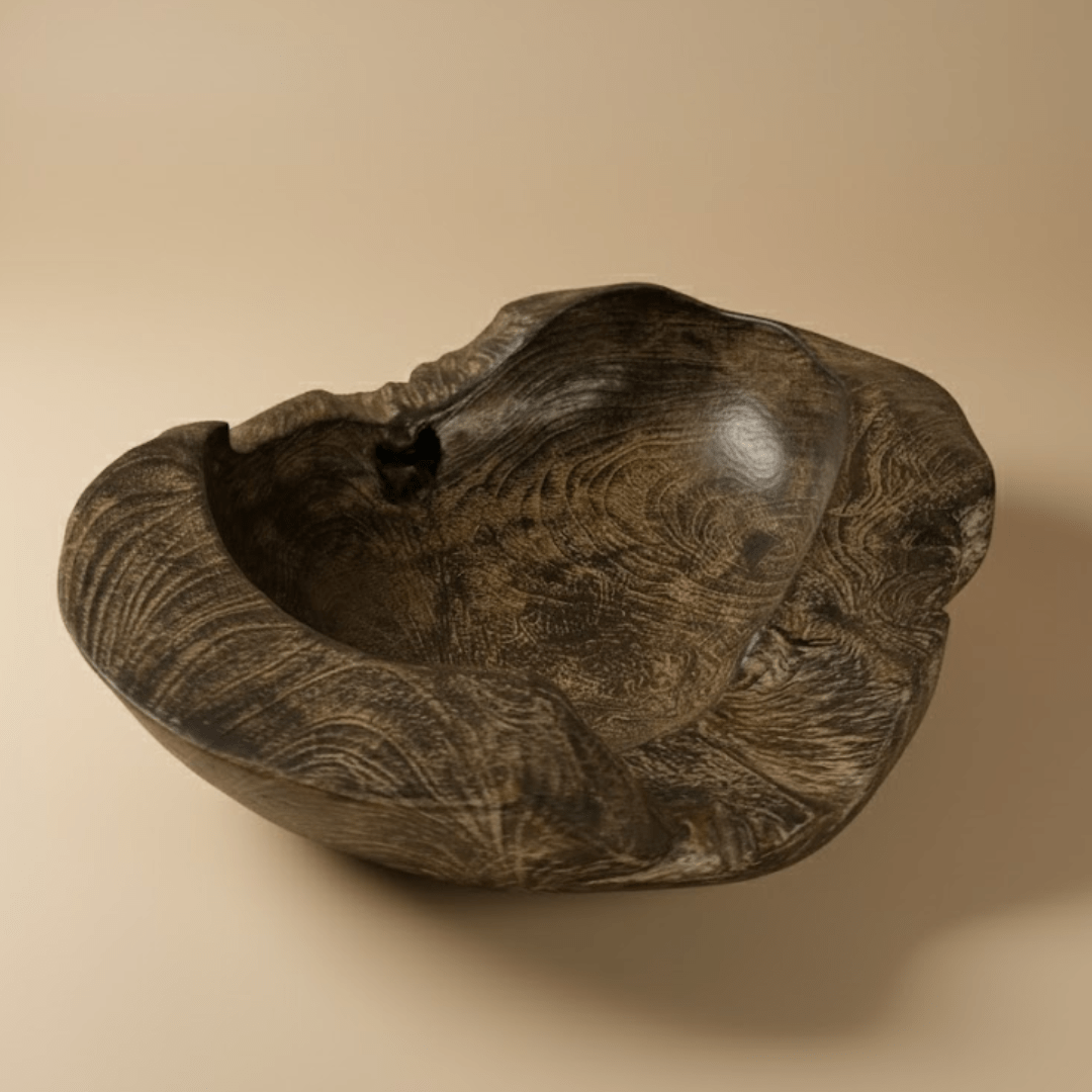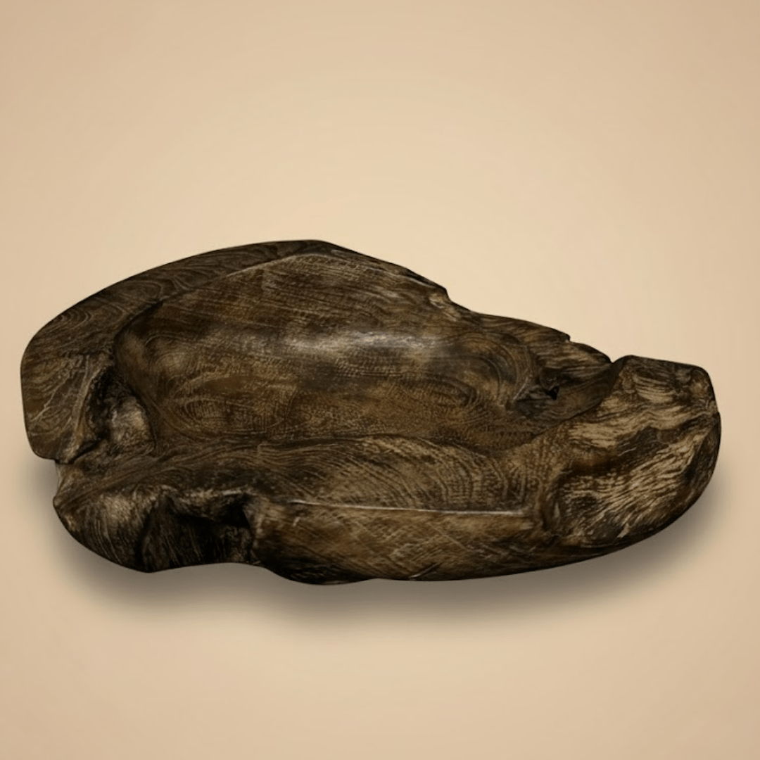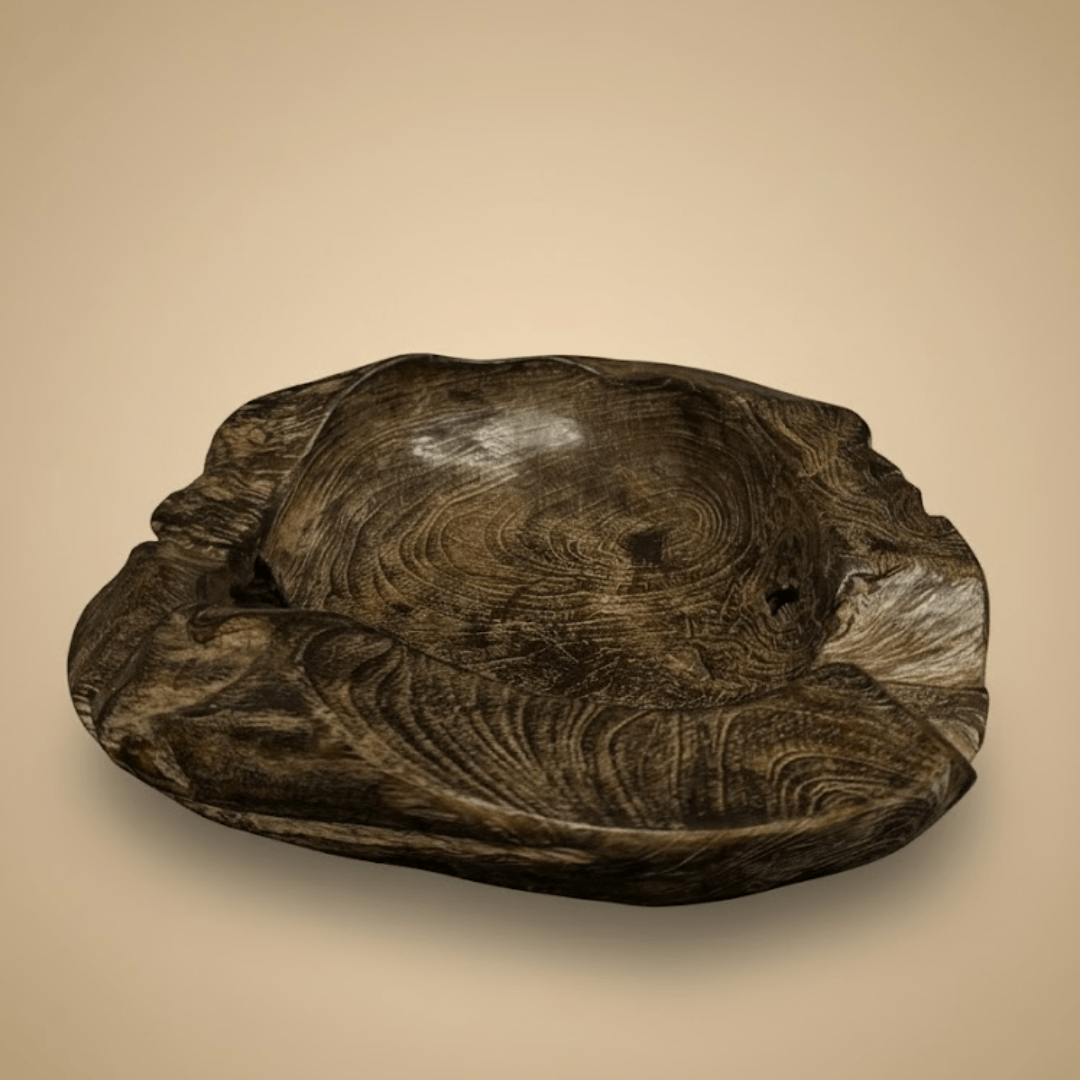Issu d’un seul bloc de teck massif d’Indonésie, ce bol est façonné à la main, puis délicatement teinté pour en révéler les nuances profondes.