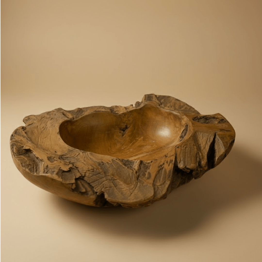 Taillé à la main dans du teck massif d’Indonésie, le bol à fruits Taille 3 incarne la rencontre entre matière et geste.