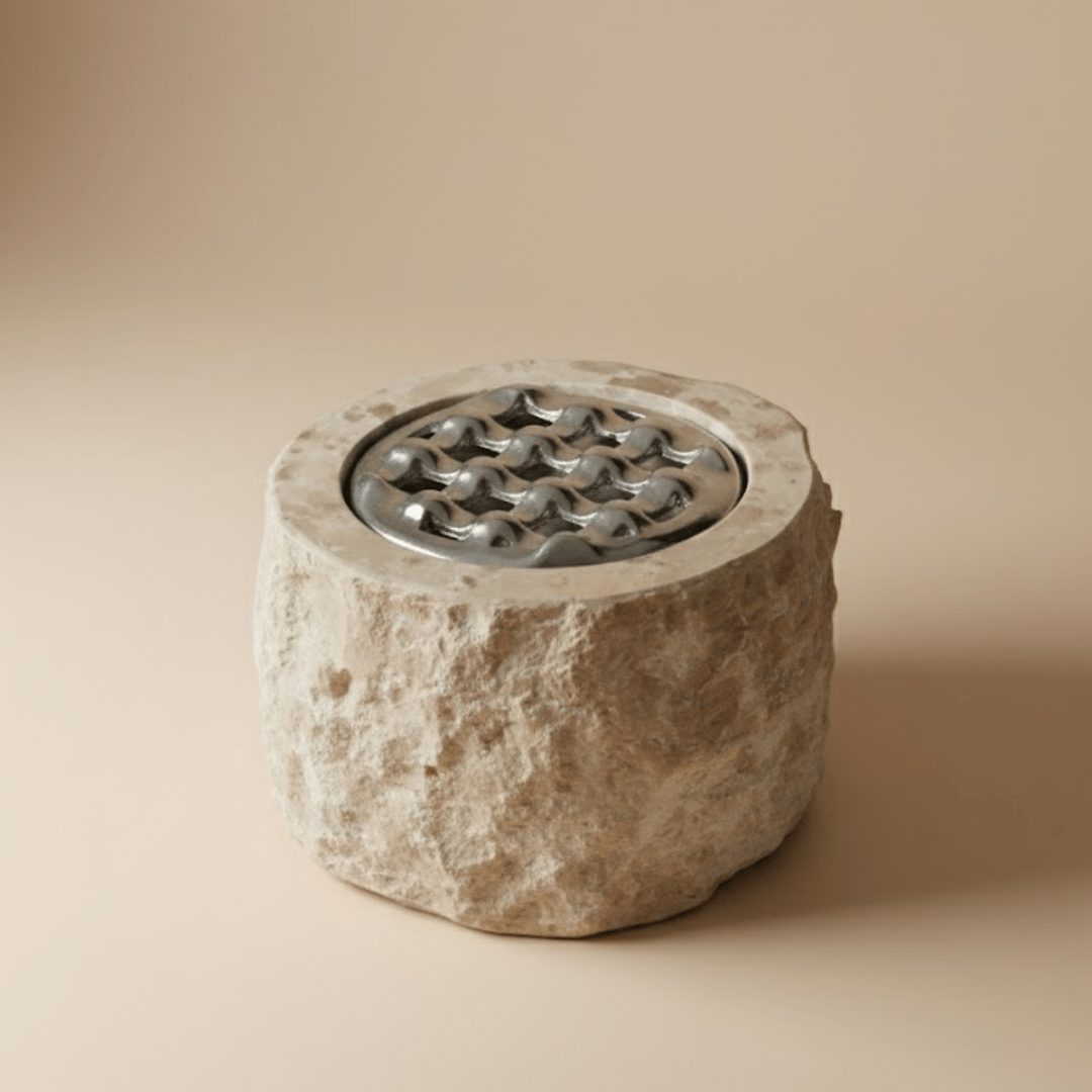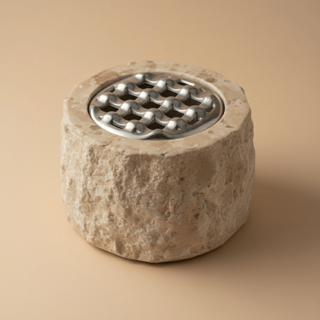 Ses lignes sobres et sa forme robuste évoquent la stabilité et l’élégance silencieuse de la pierre naturelle.