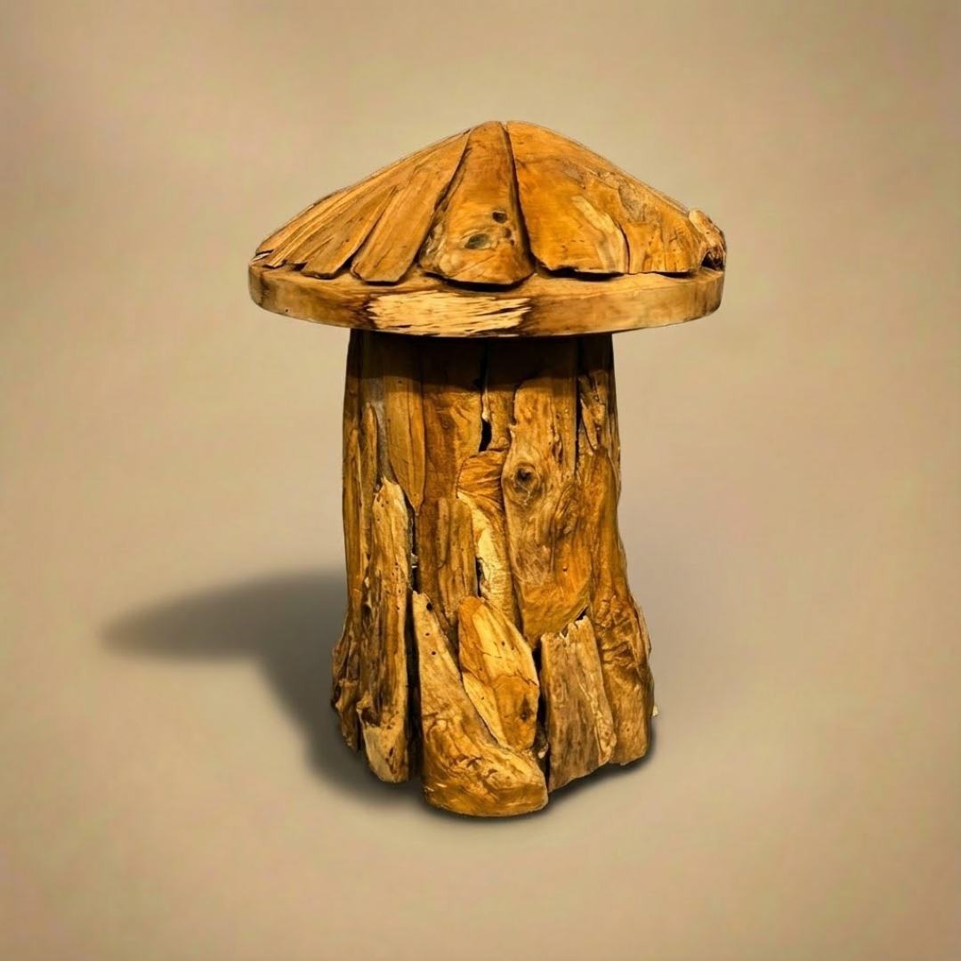 Sculpté à la main dans un teck abouté d’Indonésie, le Déco Champignon Teck Abouté (CH169) incarne le lien harmonieux entre nature et artisanat. Sa surface lisse et ses tons chauds de bois révèlent la richesse du teck travaillé avec précision. Avec sa silhouette inspirée des formes naturelles, ce champignon décoratif apporte une touche organique et poétique à tout espace.